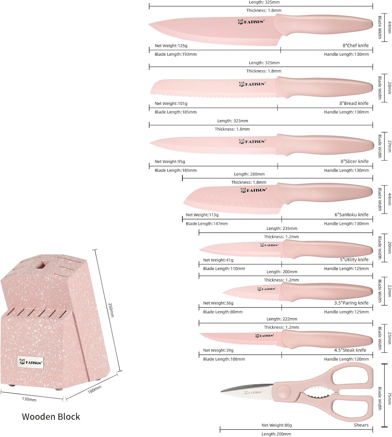 14 Pieces Fancy Pink Coding Kitchen Knife Set, No Rust, and Super Sharp Cutlery Knife Set with Wooden Stand and Kitchen Scissors for Family and Restaurant